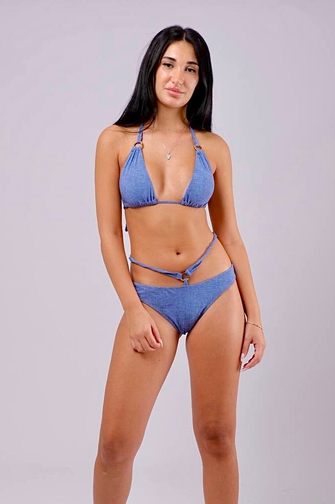 - חזיית משולשים קלאסית עם רצועות עבות ונוחות מחוברות בטבעות קוקוס טבעיים גימור עבודת יד.
